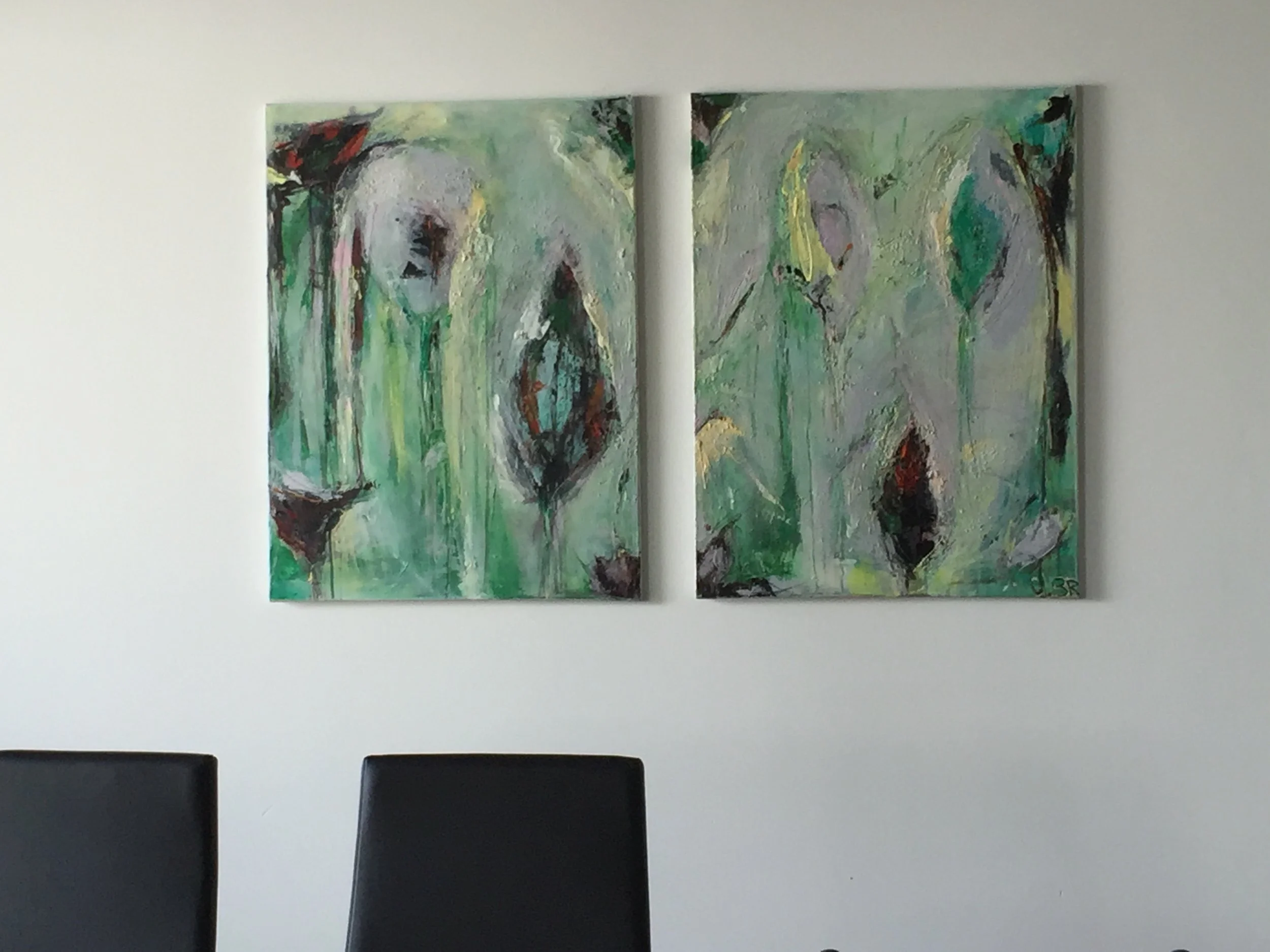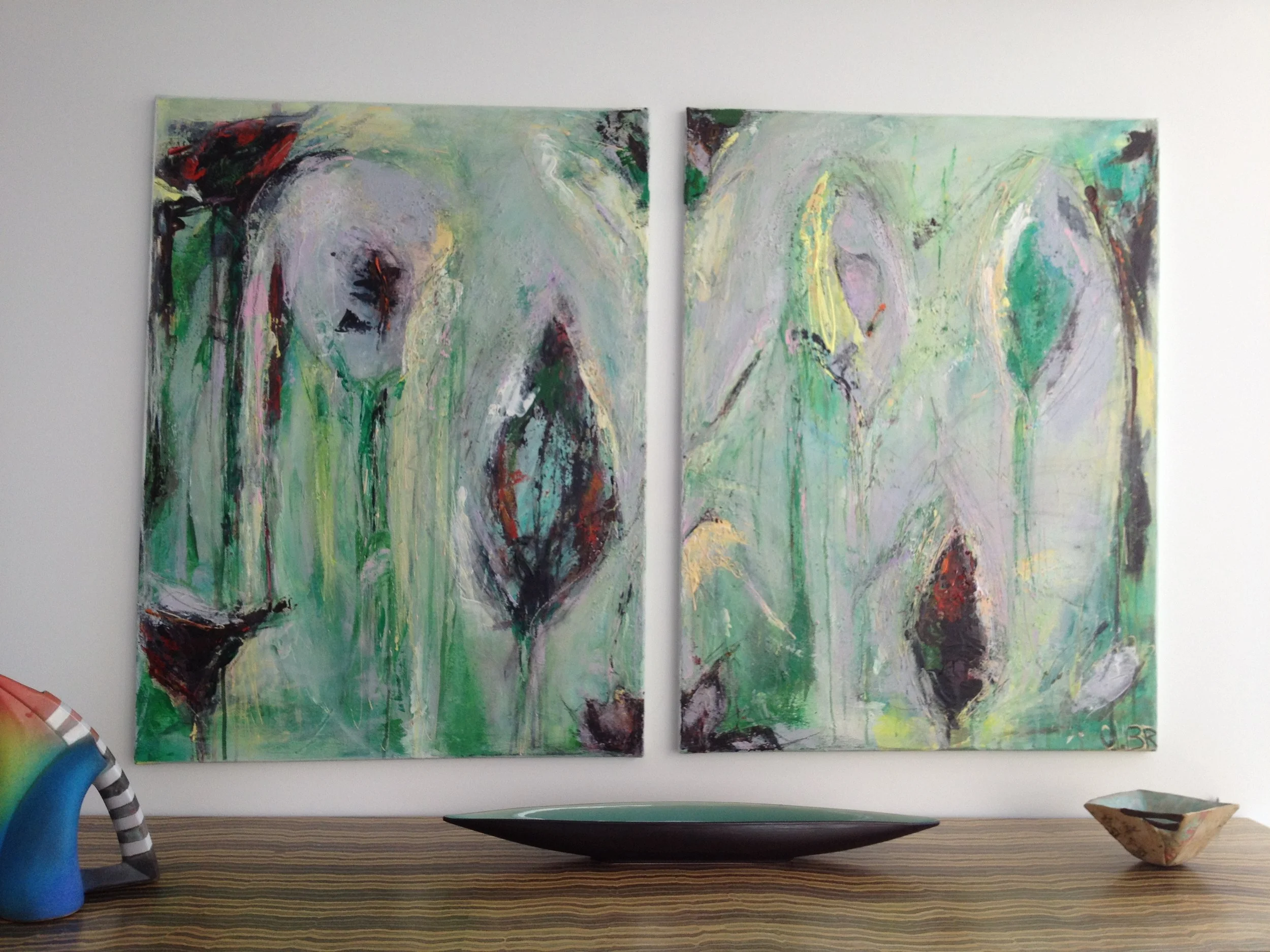 Aug 28 Aug 28 Blumen (Bild 13) Verkauft Ursula Brühlmann Acryl Mischtechnik 2 mal 80/60 cm auf LW (verkauft)