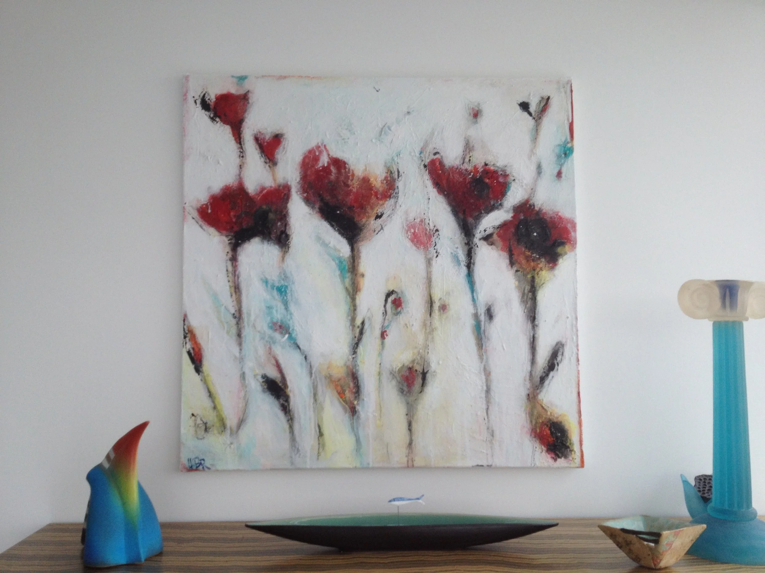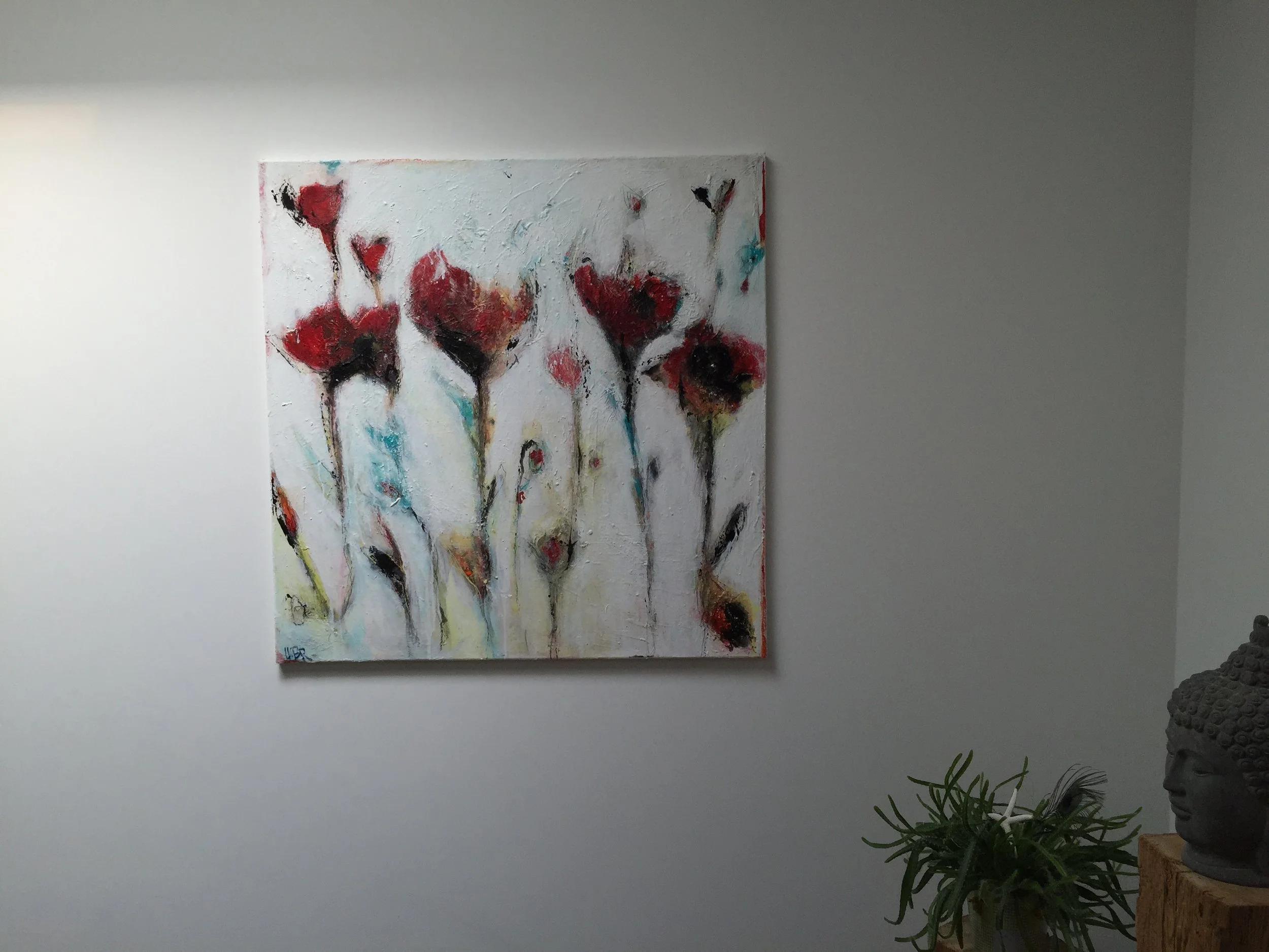 Aug 28 Aug 28 Blumen (Bild 12) Verkauft Ursula Brühlmann Acryl Mischtechnik 80/80 cm auf LW (verkauft)Nachfolgend 1 Detailaufnahme