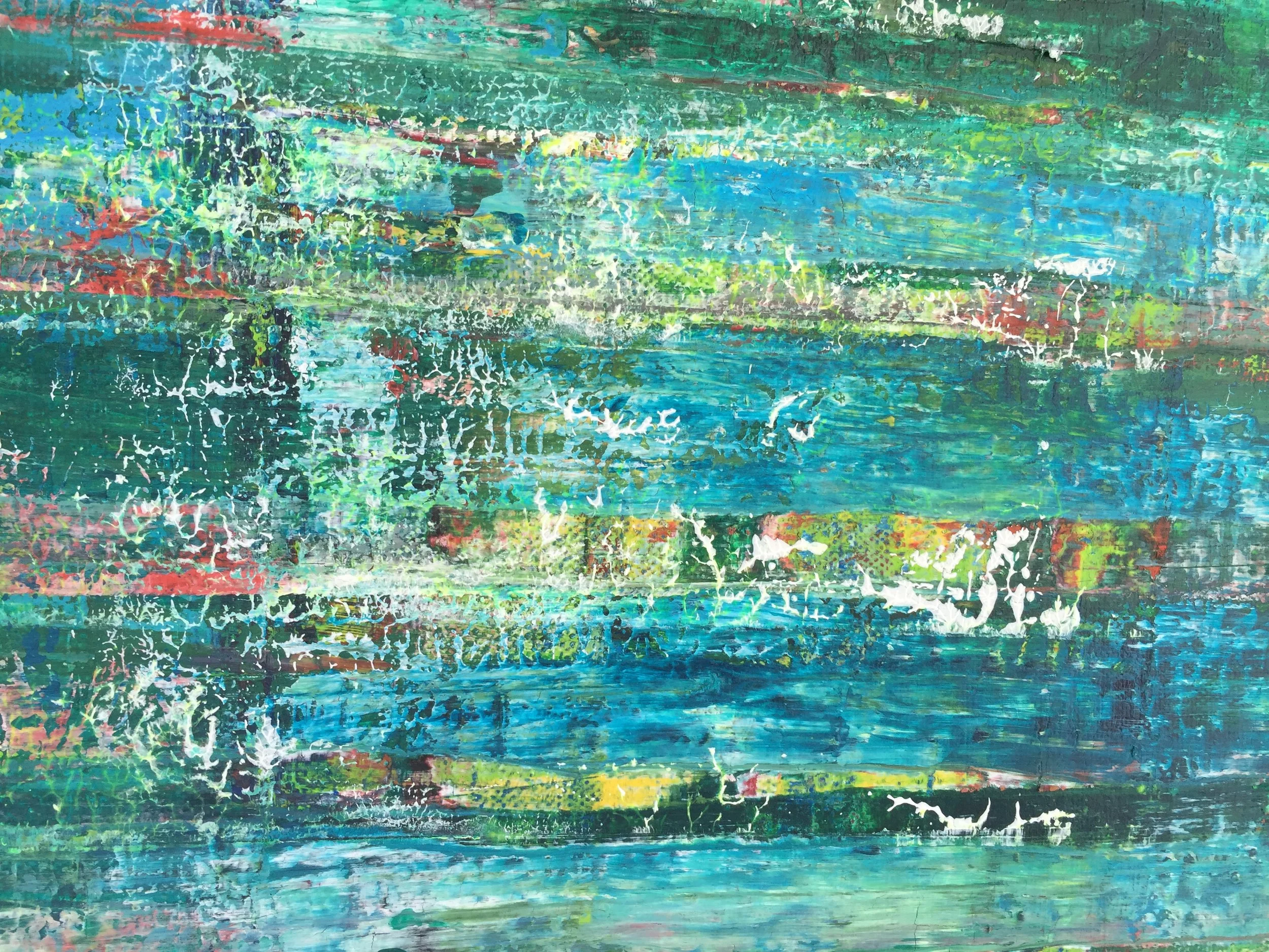 Aug 28 Aug 28 Mischtechnik (Bild 19) Ursula Brühlmann Acryl Mischtechnik Nr. 16 (Rakel)100/70 cm auf LWNachfolgend 2 Detailaufnahmen